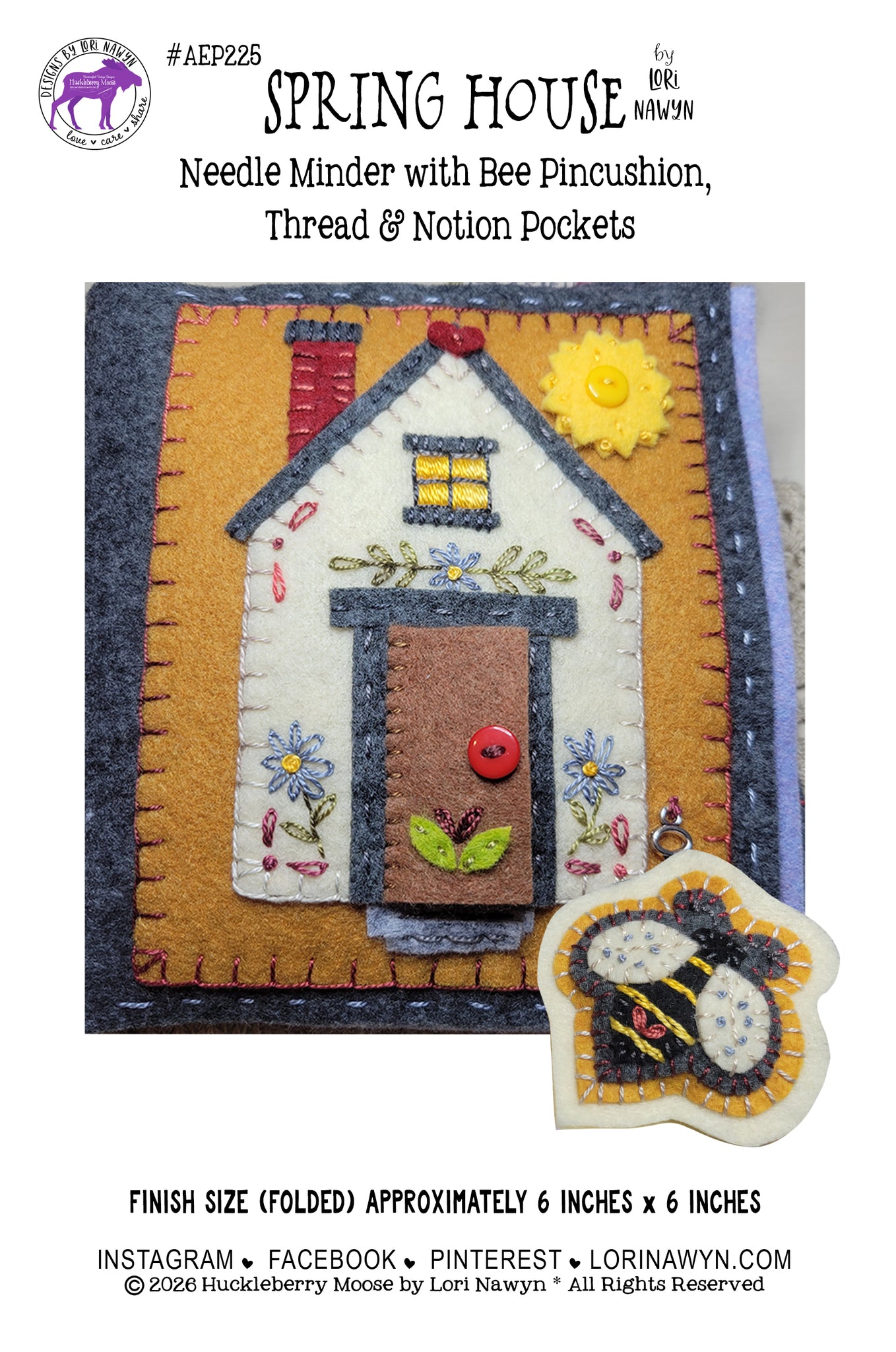 A fun needle minder for spring (look behind the front door!) with interior notion pockets--and a bee pincushion. Add your own special touches to make a treasured keepsake.