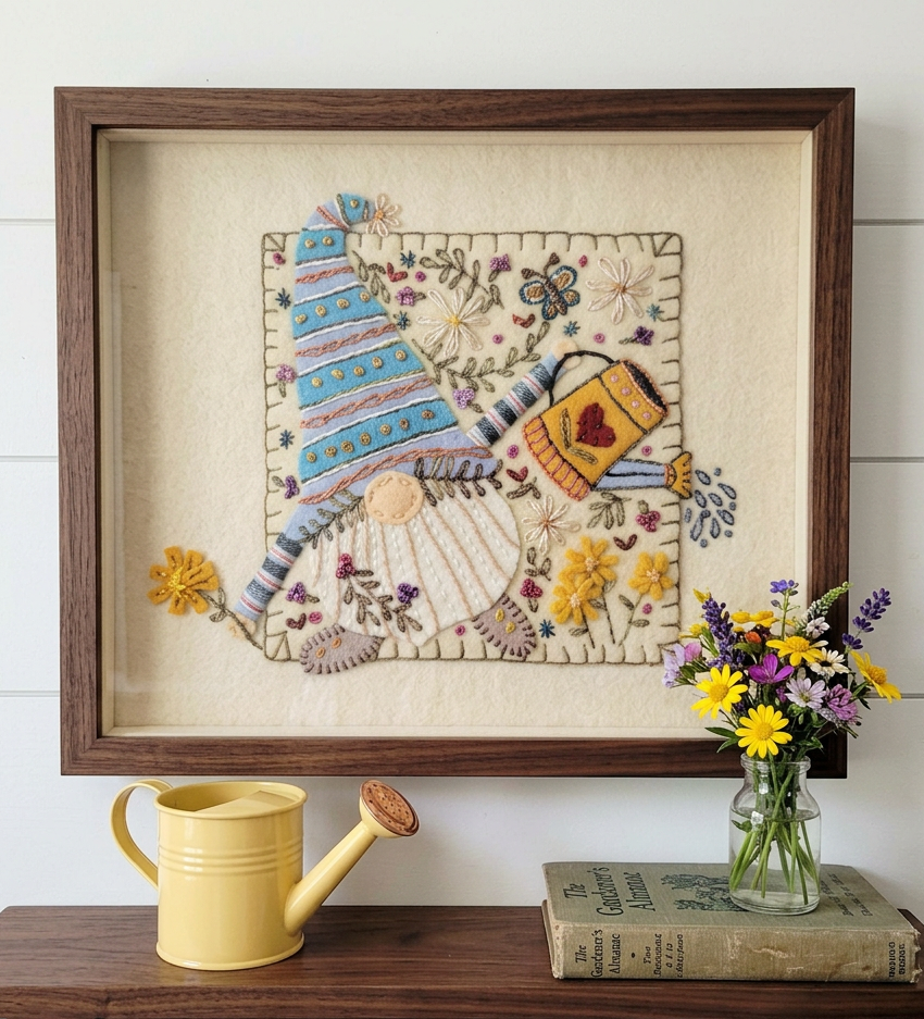 Stitch this sweet Garden Gnome and give him to friends or family members who love to garden. Use felt or felted wool and add your own unique touches to make this a truly cherished heirloom piece.